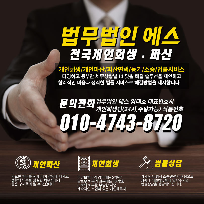 -법무법인 에스 임태호 대표변호사 개인회생팀(24시, 주말 가능) 직통 번호 : 010-4743-8720-